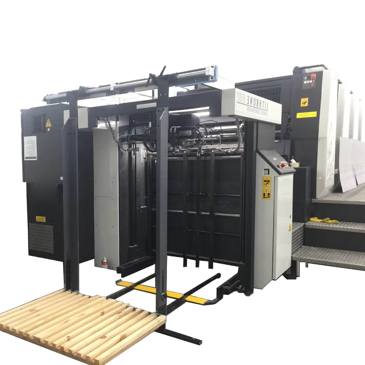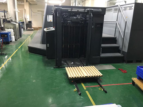 本公司開發(fā)生產(chǎn)了一種印刷機(jī)預(yù)裝紙裝置,適用于國內(nèi)外各品牌印刷機(jī),用于印刷機(jī)進(jìn)紙的可垂直升降的進(jìn)紙托盤,其特征在于: 在印刷機(jī)進(jìn)紙托盤上安裝導(dǎo)軌,進(jìn)紙托盤上導(dǎo)軌與地面安裝的導(dǎo)軌對接,所述導(dǎo)軌和所述進(jìn)紙托盤之間還設(shè)置一個垂直于所述進(jìn)紙托盤的縱長的定位尺。新型的印刷機(jī)預(yù)裝紙裝置通過導(dǎo)軌可以精確定位小平板車,再通過定位尺對其上的紙張進(jìn)行定位,從而快速準(zhǔn)確地對小平板車上的紙張進(jìn)行定位作業(yè)。本實用新型的印刷機(jī)預(yù)裝紙置具有結(jié)構(gòu)簡單,高效,定位準(zhǔn)確等優(yōu)點(diǎn)。